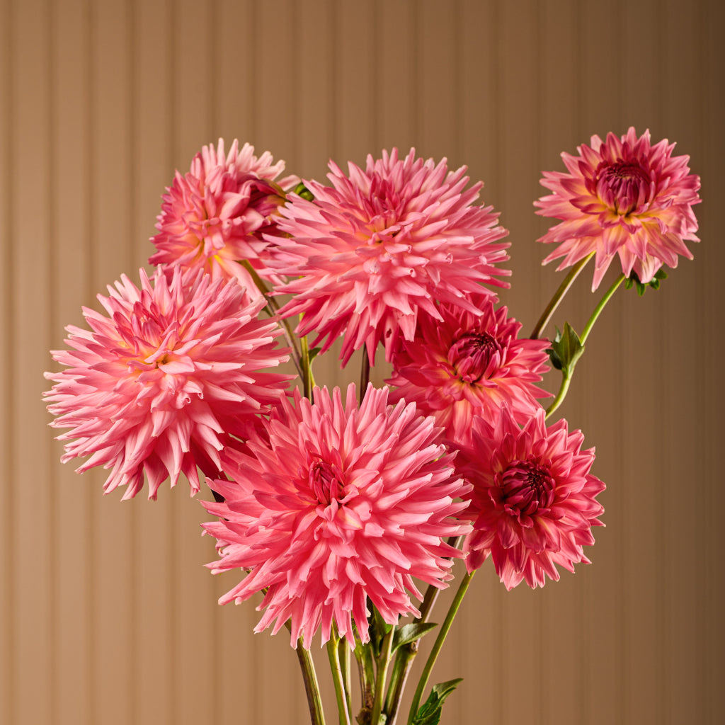 Un dahlia des plus magnifiques, dans une ravissante nuance de rose pêche. Cette variété est particulièrement florifère et se décline dans l'une des couleurs les plus prisées. Ses tiges robustes en font un choix idéal pour les bouquets. Fleur de 6"