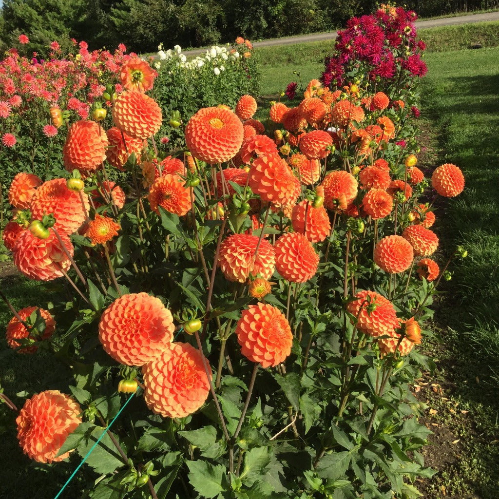 Fleur de 3.5" orange foncé. Ressemble a une balle et avec ses longues tiges , elle est parfaite pour la fleur coupée. Très florifère, elle est une fleur indispensable pour la vente aux fleuristes ou pour vos bouquets.
