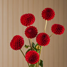 Bel ajout à nos jardins. Mini balle rouge pompier avec un feuillage foncé. Excellente pour la fleur coupée, par sa grosseur la fleur a une bonne tenue en vase.