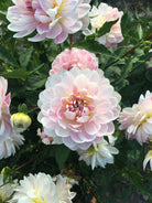 One of our most popular flowers! Camellia flower 4-4.5" (10-12cm) blush with a slight pink tint which varies from one flower to another. Very good cut flower, solid plant.