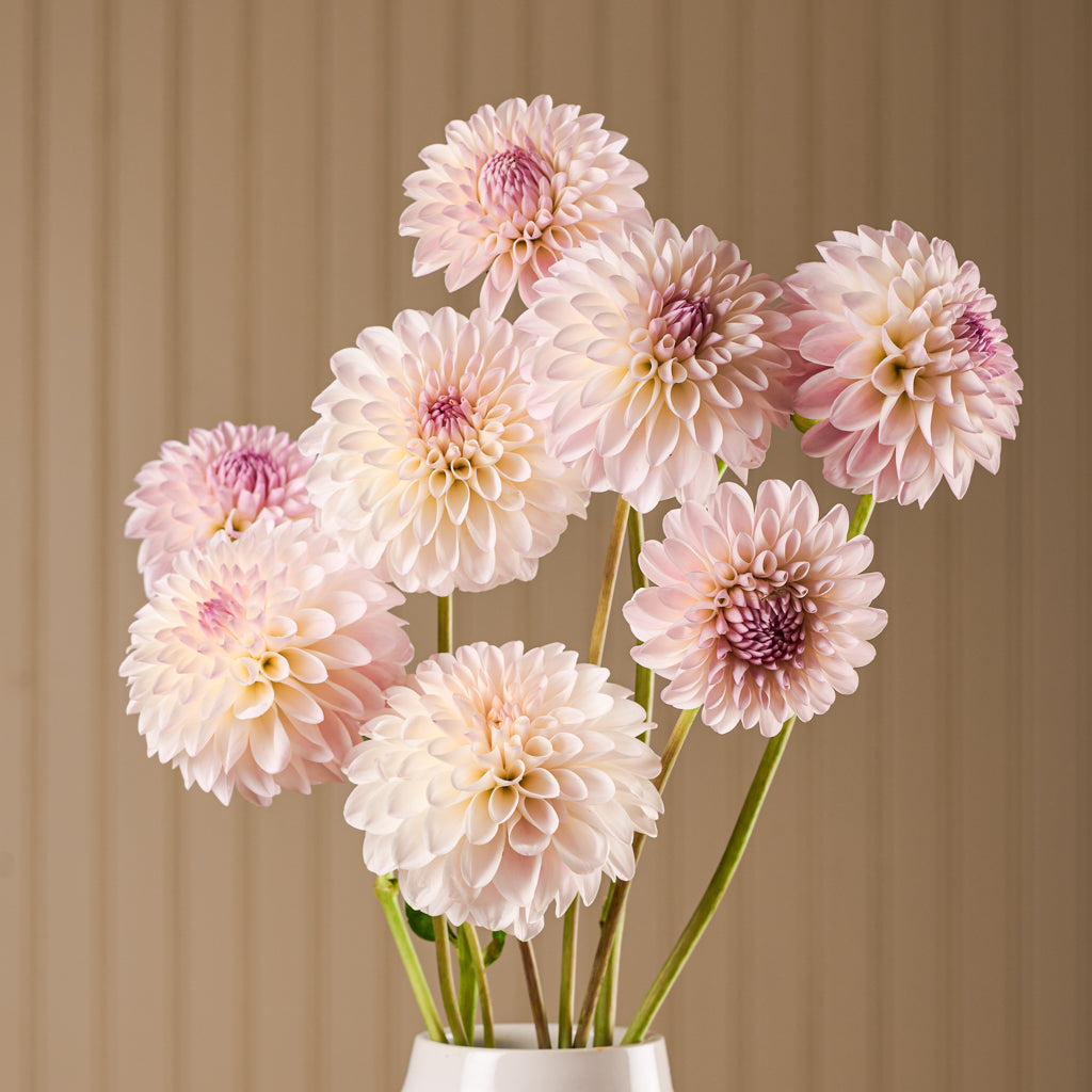This pale lavender pink flower is a hit on the farm! It has everything going for it, a delicate shape which gives a magnificent effect in bouquets, long strong stems and a very generous plant. A must-have dahlia for flower farms!