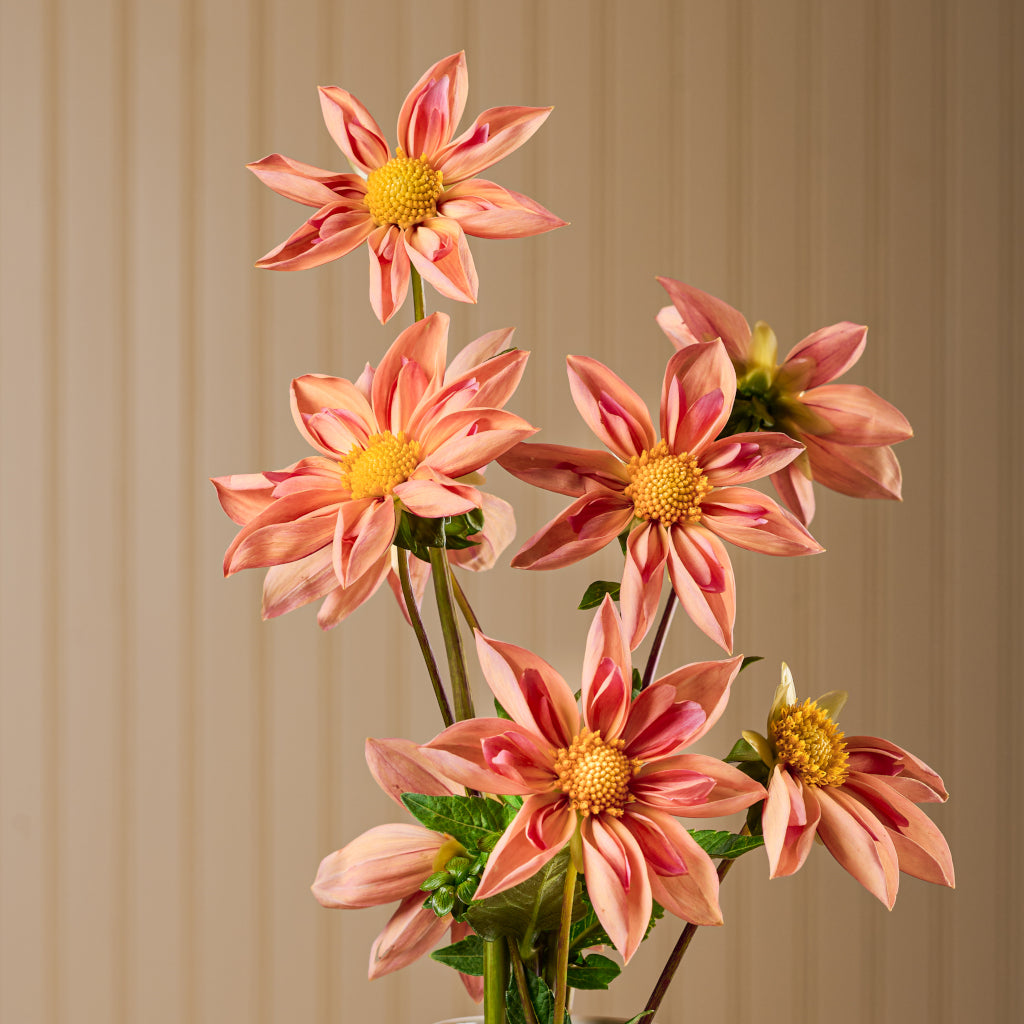 It's a name that represents the flower very well, which is a beautiful pastel peach with sparkling petals. We had noticed that the Mars variety sometimes produced flowers of a different color. We therefore isolated the tubers for a few years to finally present this variety to you. Very proud of this addition to our collection.