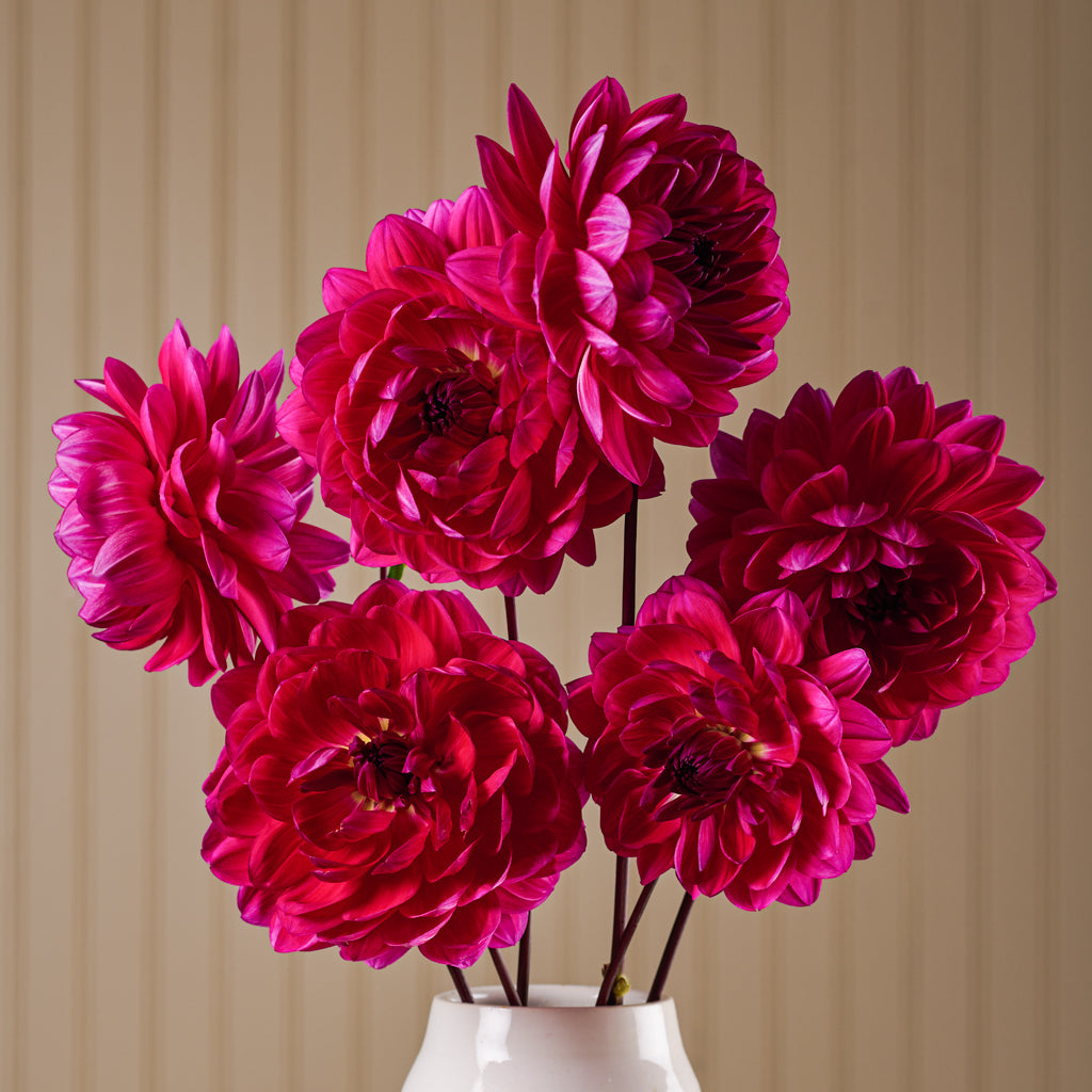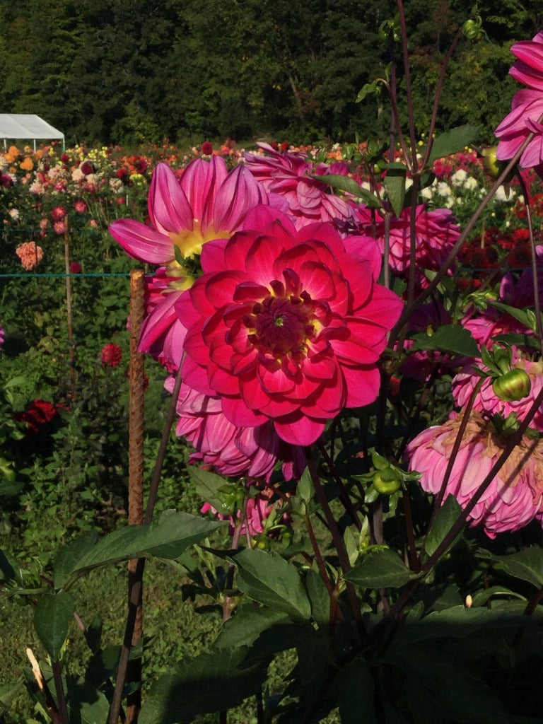4.5-5'' (12-13 cm) dark pink flower that always stands out during our pick-your-own days. Lyn's Lexi produces beautiful cut flower stems and is one of our first flowering dahlias.
