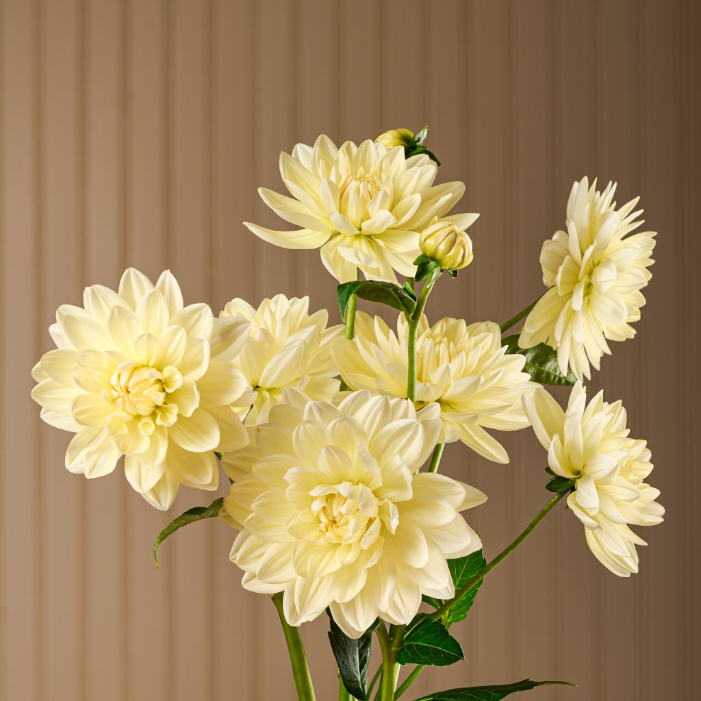 Ce dahlia représente la délicatesse par sa forme et sa couleur d’un jaune-crème très doux. Cette variété est une excellente candidate pour la fleur coupée puisque le plant fourni beaucoup de fleurs sur de longues tiges.