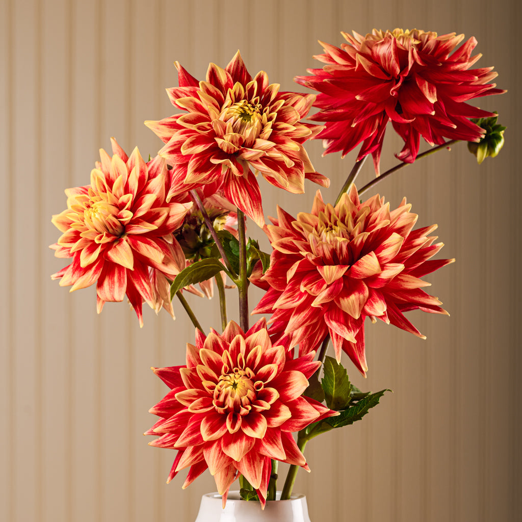 Cette fleur offre un beau dégradé de jaune doré au rouge orangé tel un beau couché de soleil. Cette variété produit des fleurs de 9" de bonne profondeur sur un plant compact et solide.